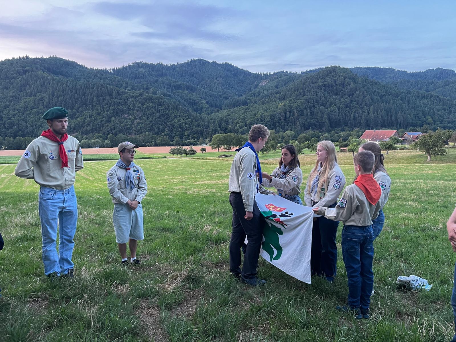 Ein besonderes Highlight des Wochenendes war die feierliche Versprechenszeremonie am Abend. In einer stimmungsvollen Atmosphäre legten viele Gruppenkinder ihr Pfadfinderversprechen ab, und auch zwei neue Leiter wurden feierlich in die Gemeinschaft aufgenommen. Für die neuen Leiter war dieser Moment außergewöhnlich und bedeutsam – ein Symbol für ihr Engagement und ihre Bereitschaft, Verantwortung in der Pfadfinderarbeit zu übernehmen. Solche Augenblicke unterstreichen den besonderen Zusammenhalt und die Werte der Pfadfindergemeinschaft.