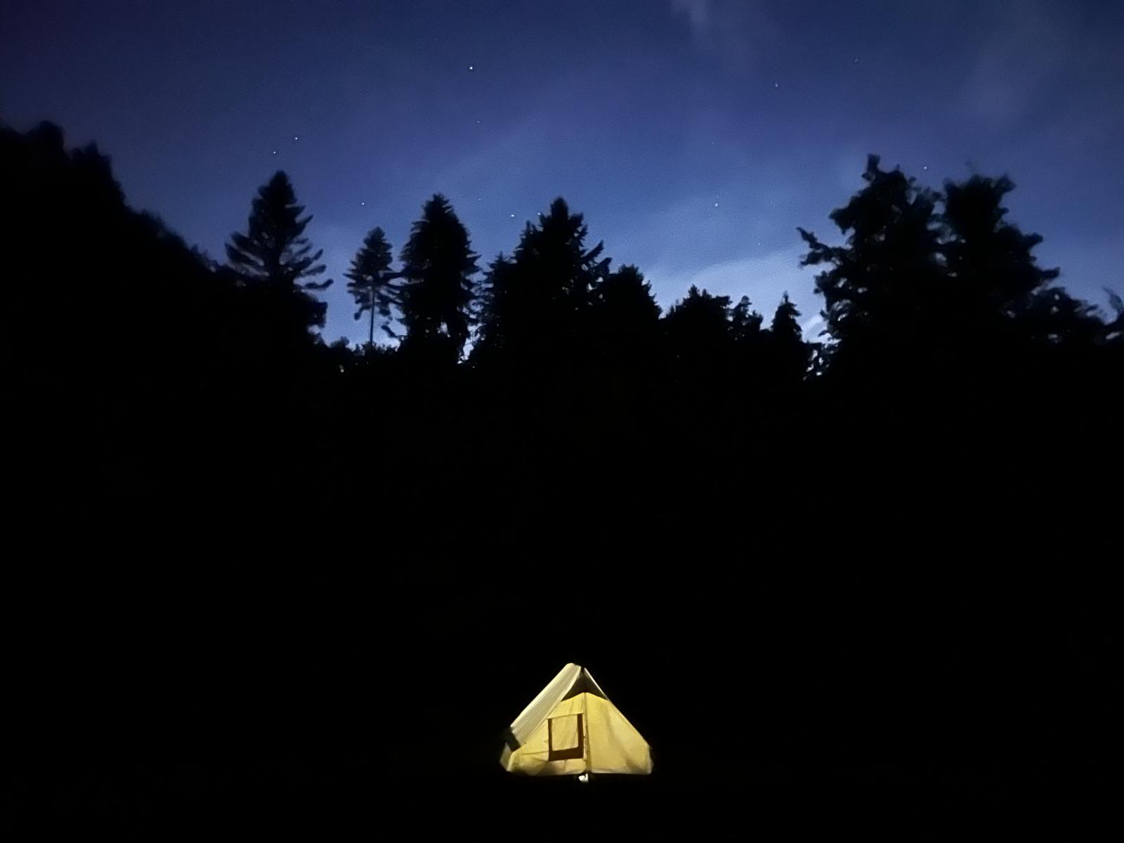 Am Abend wurde gemeinsam an der Feuerstelle gegrillt und Stockbrot gemacht. Als es begann dunkel zu werden, zündeten wir am Feuer unsere Fackeln an und brachen zur Nachtwanderung durch den Wald auf. Auf dem Weg erhielten wir einen Einblick in das Nachtleben verschiedener Waldbewohner. Erschöpft vom Tag wollten alle Jugendlichen schon bald schlafen und legten sich im Zelt in ihre Schlafsäcke.